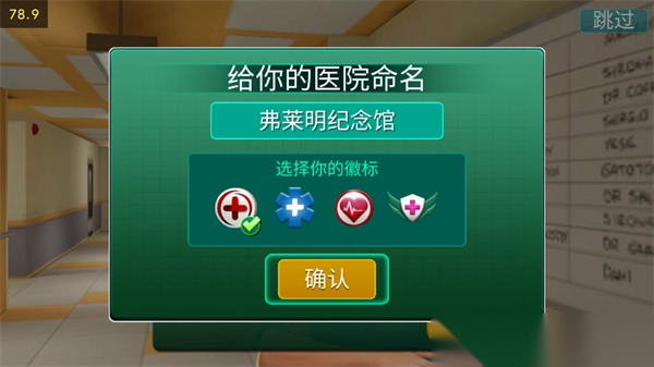 5、医院命名与徽章选择:建立专属医院,体现个人风格。