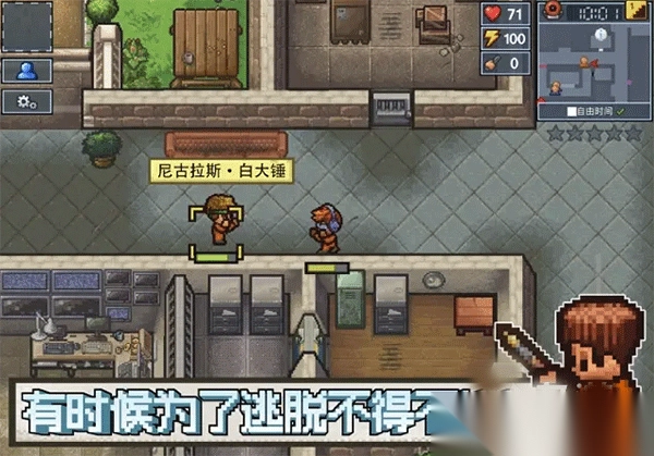 《逃脱者》中文版是一款以监狱逃脱为主题的益智冒险类游戏。它采用经典的像素风格画面,一眼望去,给人带来满满的怀旧复古视觉体验。当你作为玩家进入游戏,将扮演一名被囚禁于监狱的角色。失去自由的你,定然不想在这无尽地服刑,所以必须设法越狱。在整个游戏过程中,你得充分利用身边各类工具,与狱警斗智斗勇。并且在逃离期间,还需与其他犯人和警卫互动,也就是搞好关系,毕竟他们对你成功逃狱起着关键作用。总体而言,这款游戏相当考验玩家。还在等什么,赶紧下载体验吧!