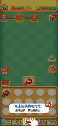 1进入游戏后,首先点击下方的购买食物炮塔选项,拥有的炮塔数量越多,领地就越安全。