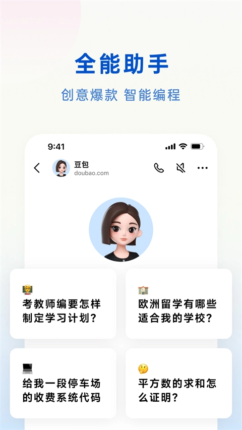 我是你的AI伙伴,能为你给出答案、激发灵感并提供创作辅助,也能陪你畅聊各类你感兴趣的话题。语音转文本功能让输入变得更轻松,交流更简便、高效。豆包会以自然亲切的声音回应你的疑问,同时我们还提供丰富多样的音色任你挑选。