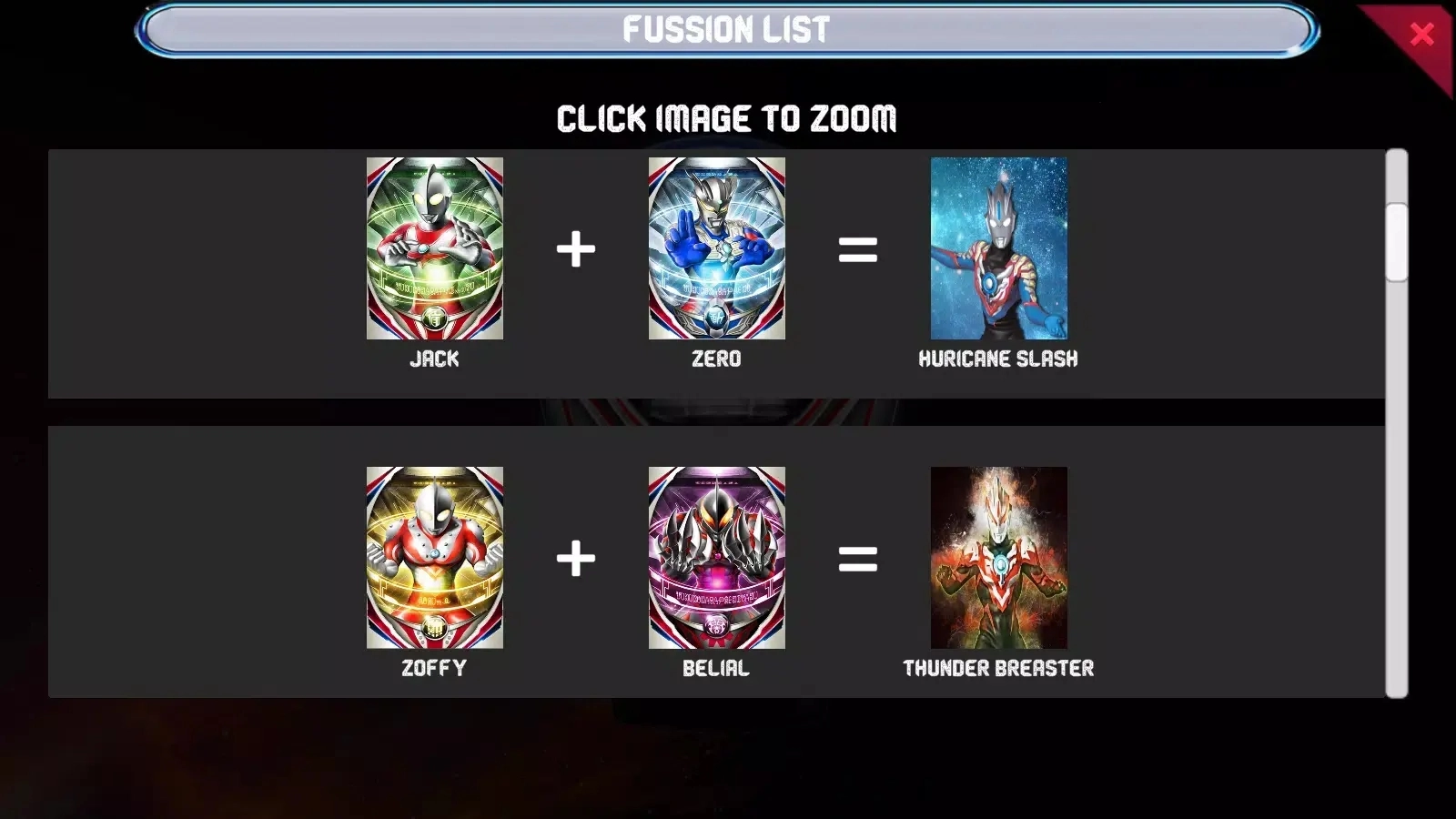 选择您想要融合或想要一起玩的奥特曼。