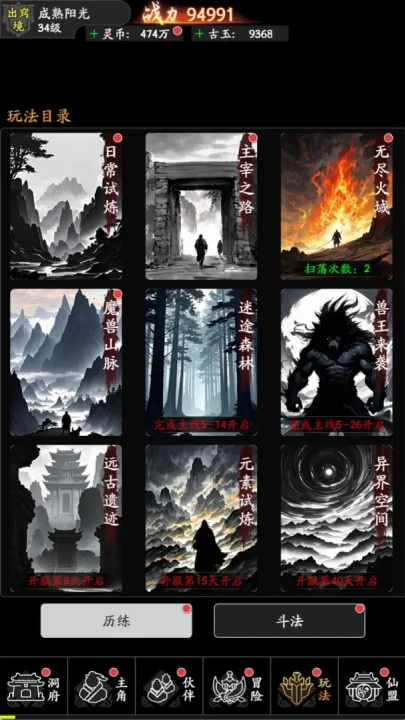 2、游戏中有诸多途径可提升自身实力,比如炼制丹药、研习斗技与功法、获取神器,还会邂逅各类奇遇,亦能修习不同的天赋神通!