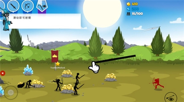 5、前往左上角,那里有一个弓箭手作战图标,点击该图标,即可召唤出弓箭手。此时,只需朝着敌人的方向滑动,弓箭手便会自动射箭。