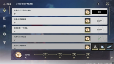 1、当玩家达成每日活跃度要求后,能够获取60星声。