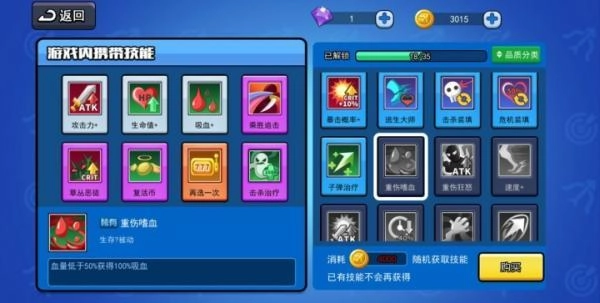 2、每次升级都会随机提升技能,拥有上百种技能组合,乐趣无穷,根本停不下来。