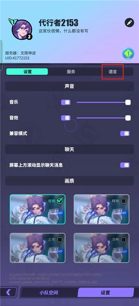 3、玩家在此处能够修改游戏画质,接着点击语言。