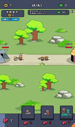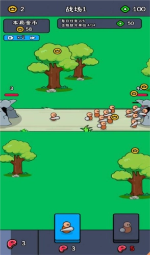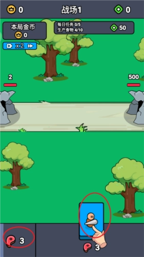 观看广告,金币翻倍拿!同时还能加快食物获取速度,召唤更多士兵,成功击退敌兵,就能顺利通关啦。