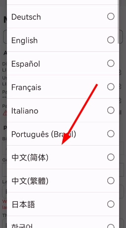 3、向下滑动页面,找到“language”,通过它来切换语言。
