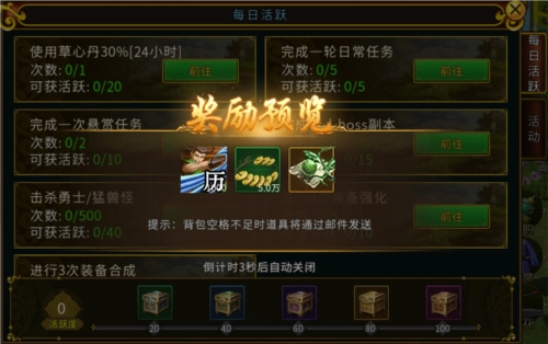 1. 每天都会开启活跃任务,完成任务获得活跃度后,能额外领取活跃礼包。