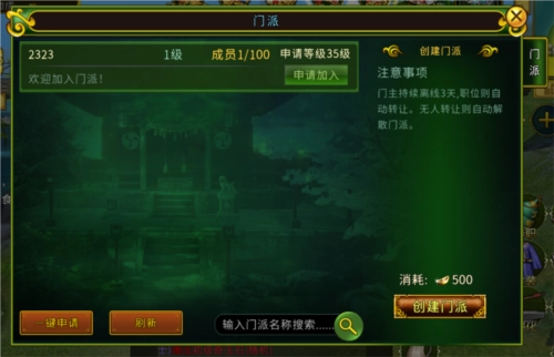 当少侠们在全民江湖游戏角色等级达到35级,就能解锁门派玩法。此时,少侠们有两个选择:一是消耗门派密令创建门派,成为一派之主;二是加入已有的门派,为其贡献自己的力量。不过,创建门派有境界要求,需达到【弑魔刀/至圣剑/玄武枪/穿云弓/济世者】其中之一的境界才行。而且,若少侠已经加入了其他门派,便不再拥有创立门派的权限。