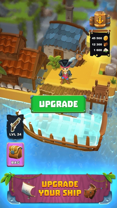 基地打造:于岛屿之上构建据点,用以储备资源、生产装备以及招募船员。