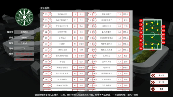 接下来便要进行球队的选择了。