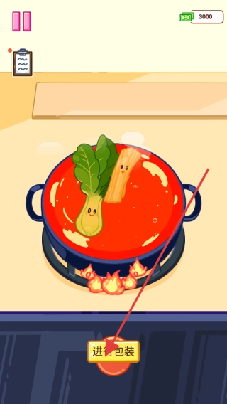3、于游戏的烹饪场景里,待美食制作完毕,点击“包装”按钮,对美食加以包装,如此便完成烹饪任务,进而获取游戏得分与奖励。