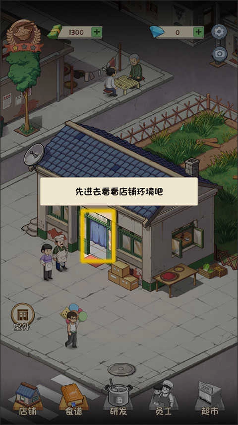 1. 把“爸爸的面馆”安装完毕后,进入游戏,第一步先点击店面,查看一下店铺环境。