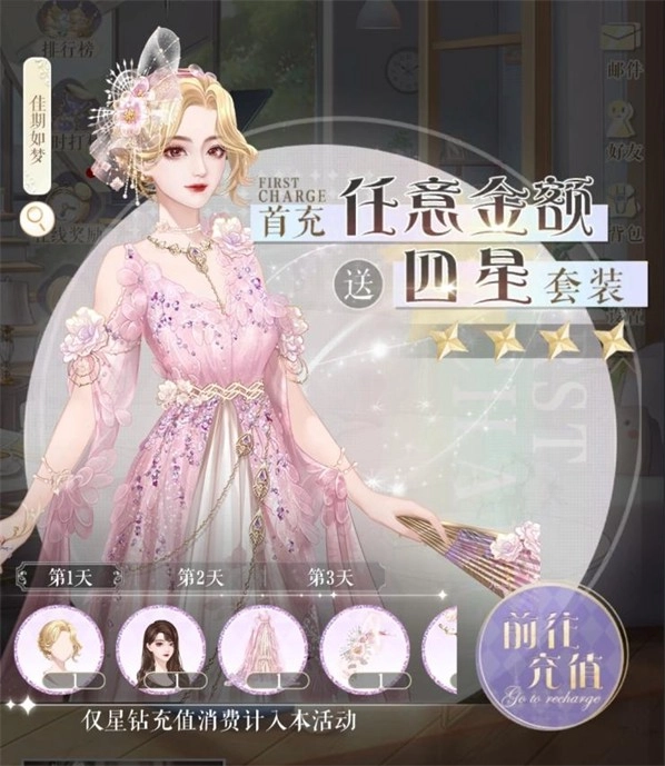 小主不妨参与首充礼包呀,参与即可直接获取一整套四星时装,而且在接下来的两天,还能分别得到时装十连抽以及猫咪十连抽。