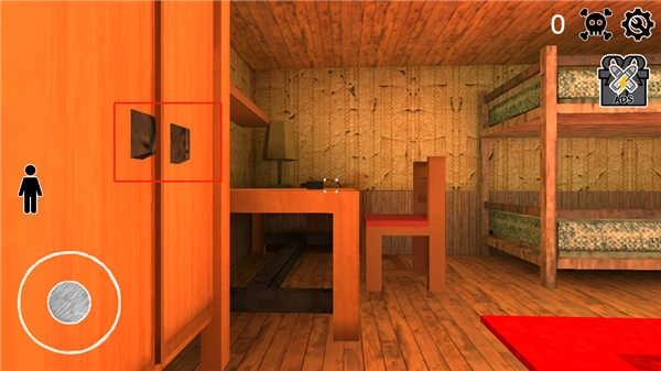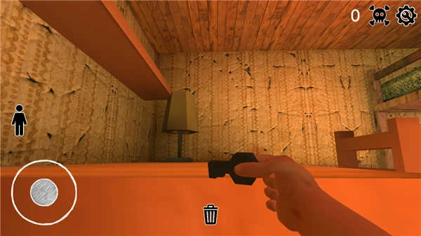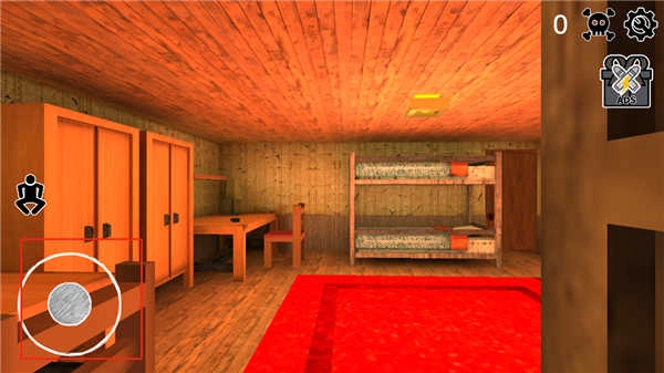 5、进入游戏后,玩家身处一个房间,需躲避爷爷奶奶并逃离此房间。操作方式为:左手控制角色移动,右手滑动屏幕来调整视角。