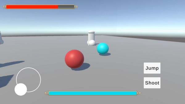 移动操控:在屏幕左侧滑动虚拟摇杆来改变方向,点击【Jump】以跳过障碍,点击【Shoot】发射能量波。