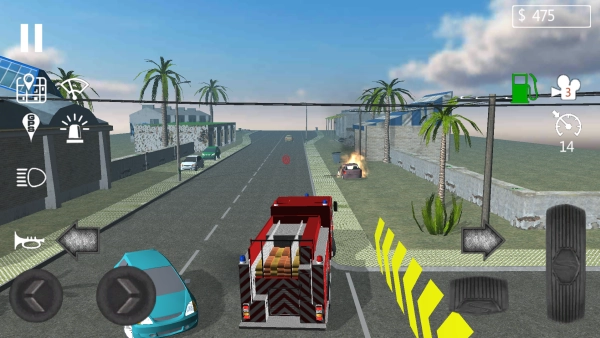 1. 进入游戏后,接到火警电话,即刻驾驶消防车火速驶向事故地点。