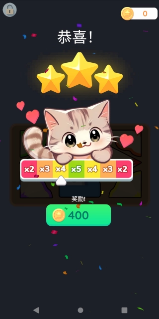 1. 这款游戏属于休闲闯关类型,其核心体验聚焦于解压放松,旨在凭借简单纯粹的内容,助力玩家舒缓压力、调节情绪。