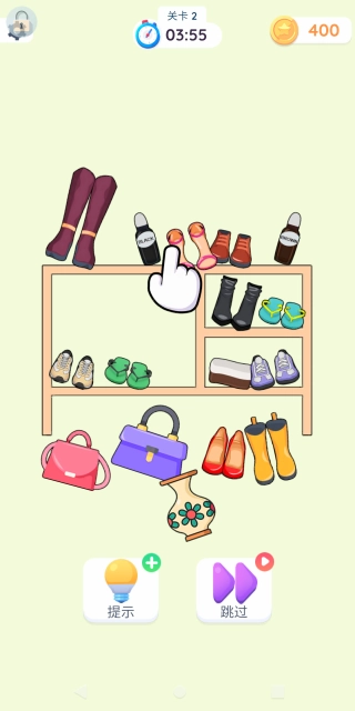 3. 来到第二个关卡,玩家要对鞋柜进行整理,把鞋子、包包之类的物品摆放至恰当位置,如此方可顺利闯关。
