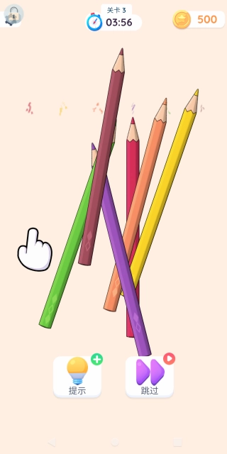 4. 在第三关里,玩家要依据颜色提示对这些彩色铅笔进行排列。