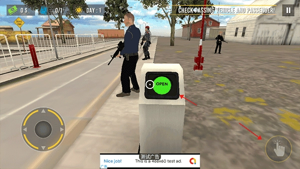 5、待所有绿色标志都完成后,前往控制口,将目标对准“open”,接着点击右下角的手形图标,就能让面前的车辆通行。