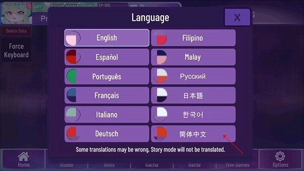开启游戏后,轻点主界面右下角的爱心图标按钮,就能执行语言切换操作。