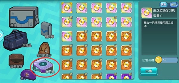 当前在游戏里,学习机不能在背包中直接使用。需进入精灵养成界面,点击“技能”,再点击“技能学习机”方可使用。