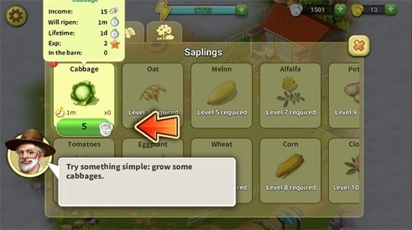 使用金币能够解锁农作物,各农作物的成长周期与经验值,点击即可查看详细数据。