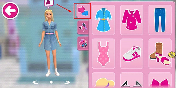 点击右上图标,可为芭比更换衣物