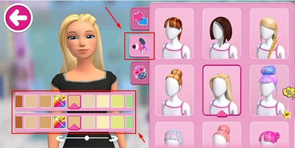 点击右中图标,可为芭比更换发型和肤色