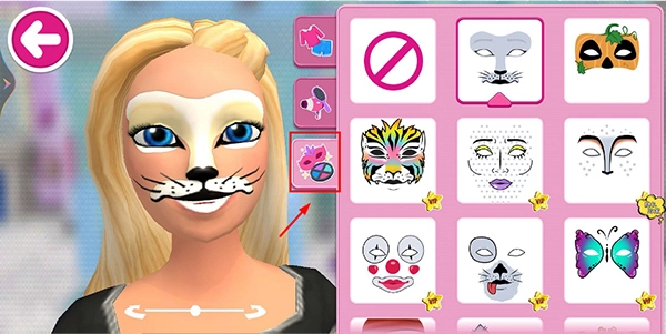 点击右下图标,可为芭比更换妆容