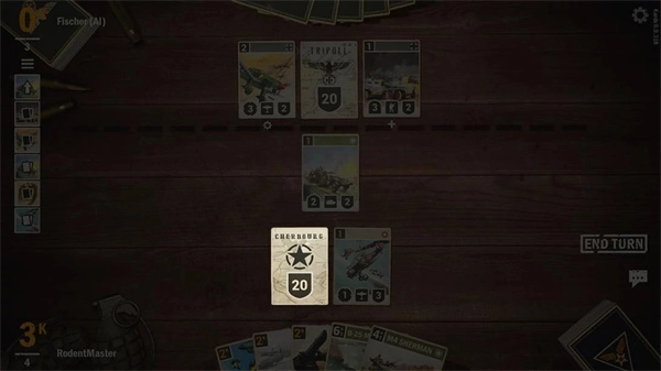 游戏里每个阶段开始时,会从牌堆里摸一张牌放到手里。一套牌堆一共是40张牌,而且里面属于盟友国家的牌最多只能有12张。