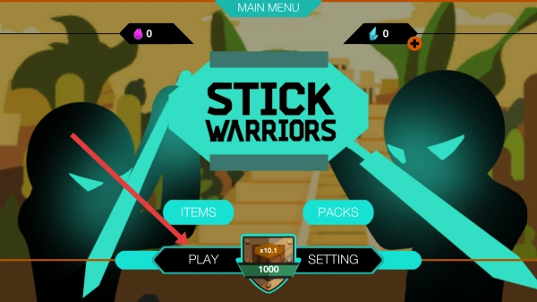 打开游戏后,在初始界面找到并点击标有“PLAY”的按钮,即可进入《Stick-Warriors》这款火柴人题材的格斗游戏,开启紧张刺激的对战环节。