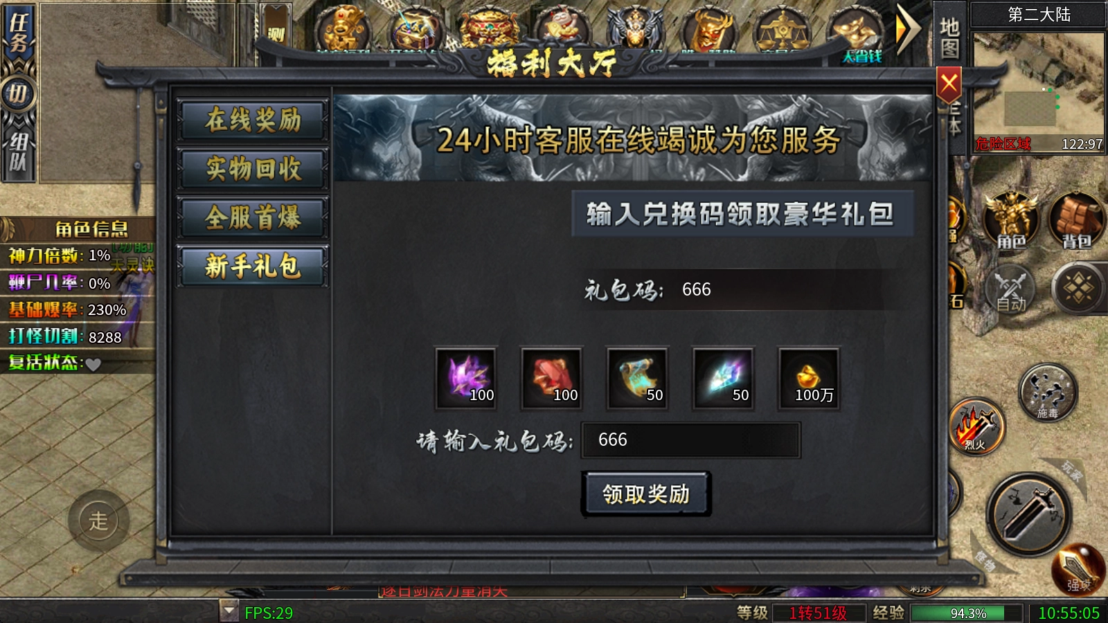 兑换方式:点击页面上方的福利大厅入口,进入后选择新手礼包选项,接着输入对应的礼包码,就能领取相应奖励了。