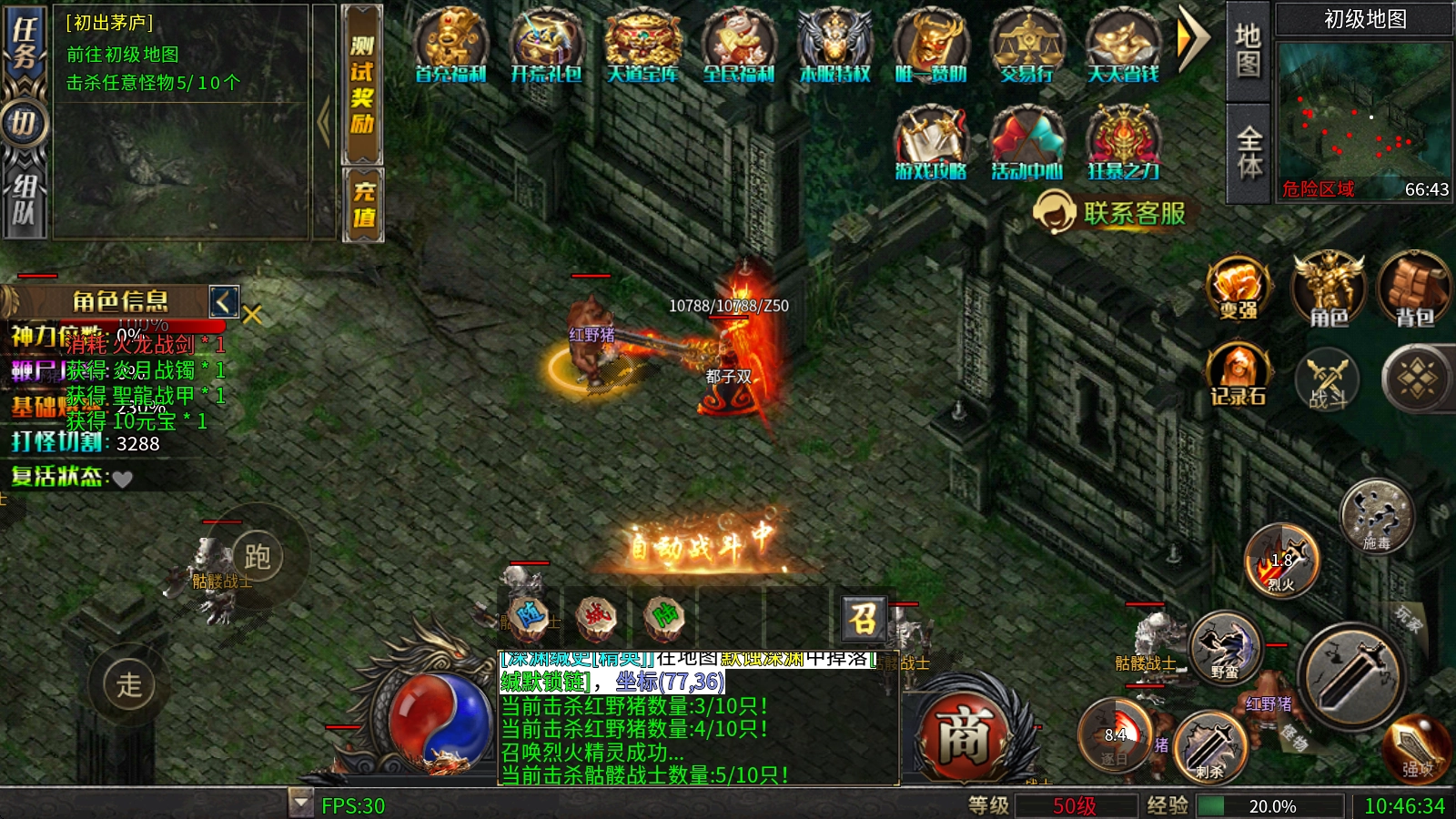 上线即送本服真充,更有自动挂机、自动回收、自动拾取等实用功能,让你轻松刷怪,升级打宝毫无压力!