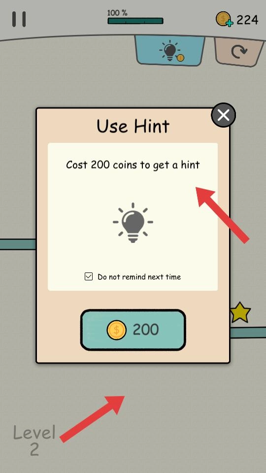 接着,在游戏进行过程中,要是碰到困难,就会弹出“Use Hint”的提示界面,该界面会显示消耗200金币就能得到提示,玩家可以点击消耗金币的按钮来获取提示。