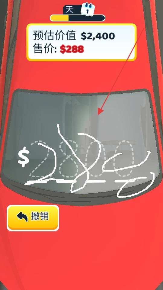进入车辆定价界面后,在红色车辆的挡风玻璃位置,按照规定的规则绘制售价,将其设定为2880;要是绘制的价格出现错误,点击撤销按钮就能重新进行操作,直至最终完成定价这一环节。