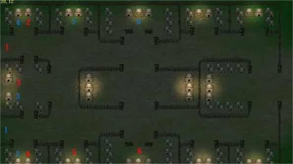 本关卡设有红蓝两个出生点,若从红1出生点出发,需沿赤色数字标记的路径行进。剿灭营寨时要遵循红蓝数字对应的顺序,刘武周位于6号点位。需注意,刺客一旦离开营寨,任务将直接判定失败;巡逻的步兵只有在其周围8格范围内没有我方人员时,才不会触发伏兵机制。