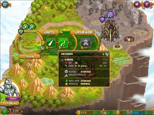 通关后可以对各类兵种实施升级操作。具体方式为:点击基地或者兵营,随后点击UPGRADE按钮即可完成升级。另外,点击左下角的箭头图标能够加快游戏进程。
