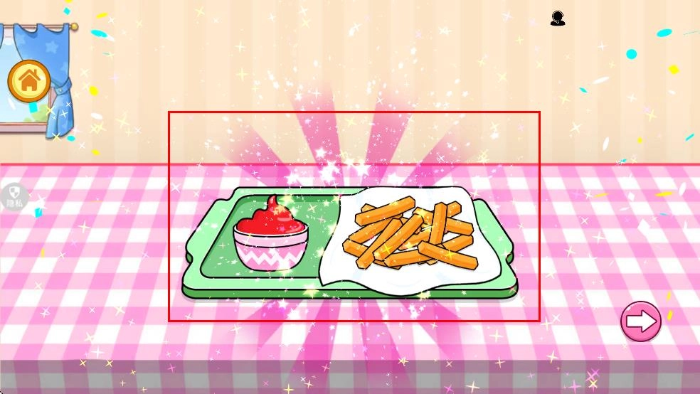 根据界面上的提示来完成土豆后续的加工步骤,一步步处理食材,直到把薯条制作好。