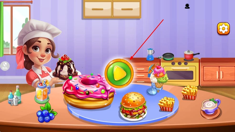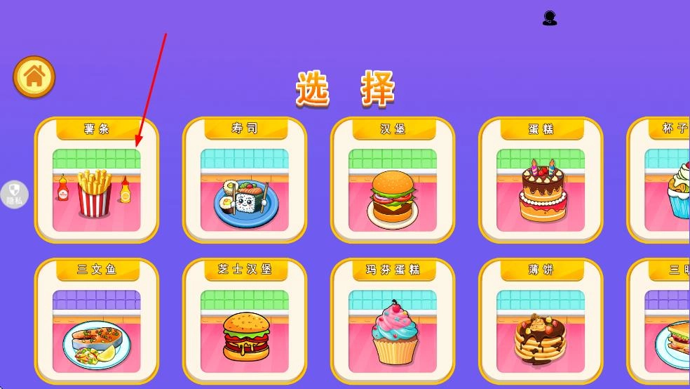 点击界面上的绿色播放按钮,进入美食选择页面后,找到薯条对应的选项并点击它。