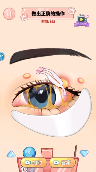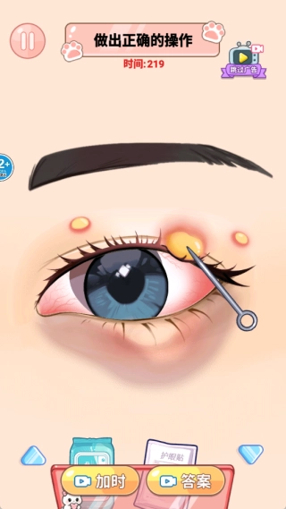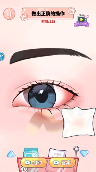 关卡难度循序渐进,从基础清洁逐步过渡到复杂护理场景,眼部清洁的需求也愈发具有挑战性,以此引导玩家不断精进自身的操作技巧。
