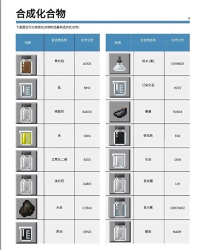 :支持多人模式,初步了解世界的基本规律,他们可以自由无限地生成地形,这导致了网民创造了无限的游戏玩法。我的世界教育版化学合成表