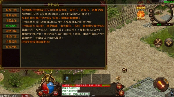 各地图的BOSS都有专属材料掉落,这些材料可用于合成BOSS召唤令;各类矿物能够通过“全民挖矿”活动获取,不过需要携带鹤嘴锄才行。