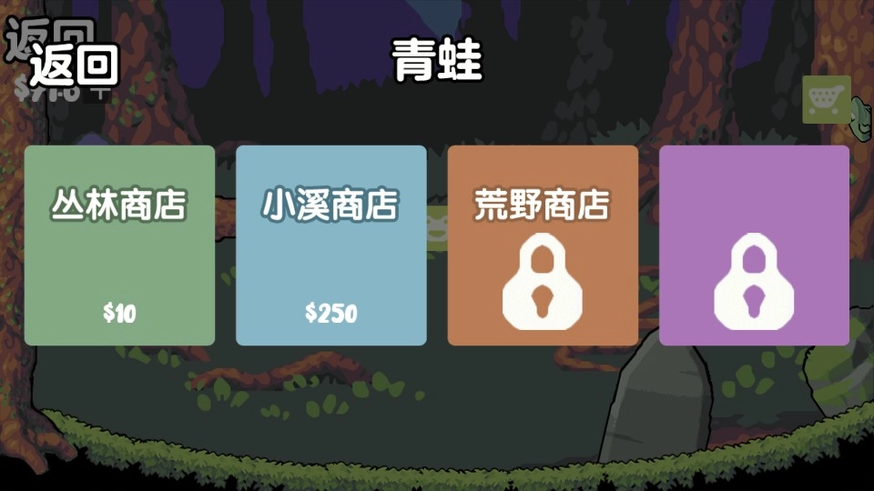 点击购物车图标即可进入商店,不同商店售卖不同地区的青蛙,价格越高,青蛙的稀有程度也就越高。