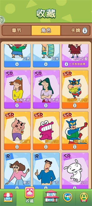 游戏里包含风间、妮妮、小新、阿呆、园长等众多角色,玩家只要持续挑战关卡,就能顺利解锁这些角色。