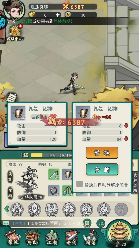 在这片广阔江湖里,自在挂机,自动修行,获取经验与资源,品味江湖的闲适与逍遥。