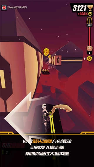 哎呀,前面的路断啦!这时候可以左右滑动,沿着带箭头的墙面行走——哈哈,是不是有点飞檐走壁的侠客感呀?