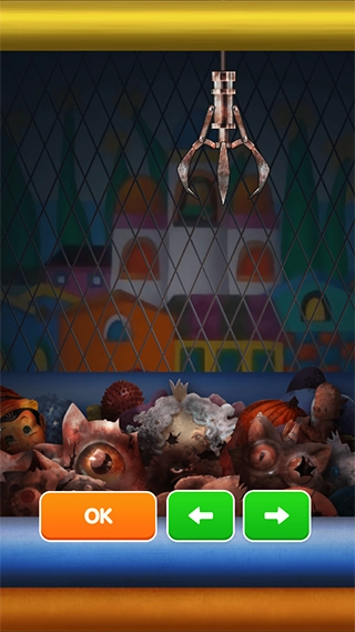 进入游戏后,点击左右按钮,移动爪子抓娃娃;